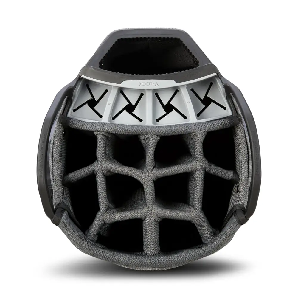 The Dri Lite V-4 bag offers the perfect overview of the clubs. Whereas with conventional tops large clubs hide smaller clubs, the V-Lock system works as follows: