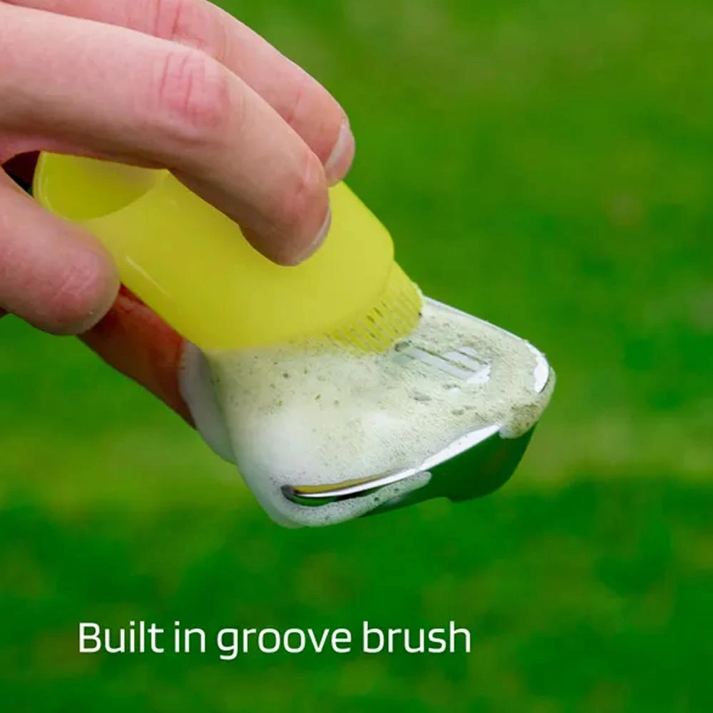 Impact Detect Club Clean is the ultimate convenient golf club cleaner. From a deep clean on a full bag of clubs to a quick groove clear out on a single wedge, Club Clean is quick and easy to use. Our club safe water-based cleaning solution removes dried on grass, dirt and sand on irons, wedges, woods and putters. Built in bristle cap gets into wedge and iron grooves effortlessly. Portable size bottle can be used on the course, while practicing or at home.